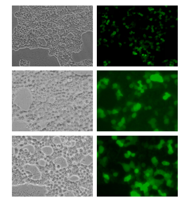病毒侵染293T后,未加四环素的情况下,细胞照片如下:
